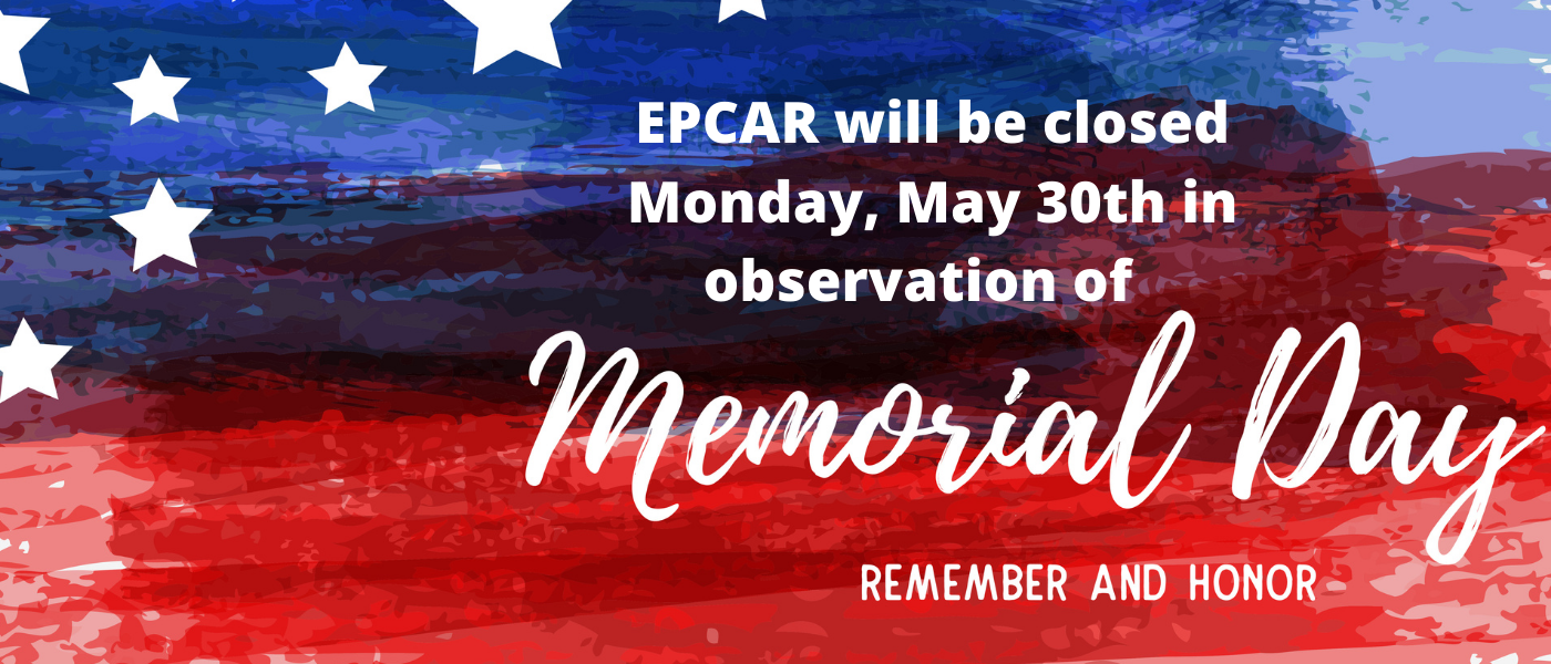 5/31/22 EPCAR will be closed in observance on Memorial Day