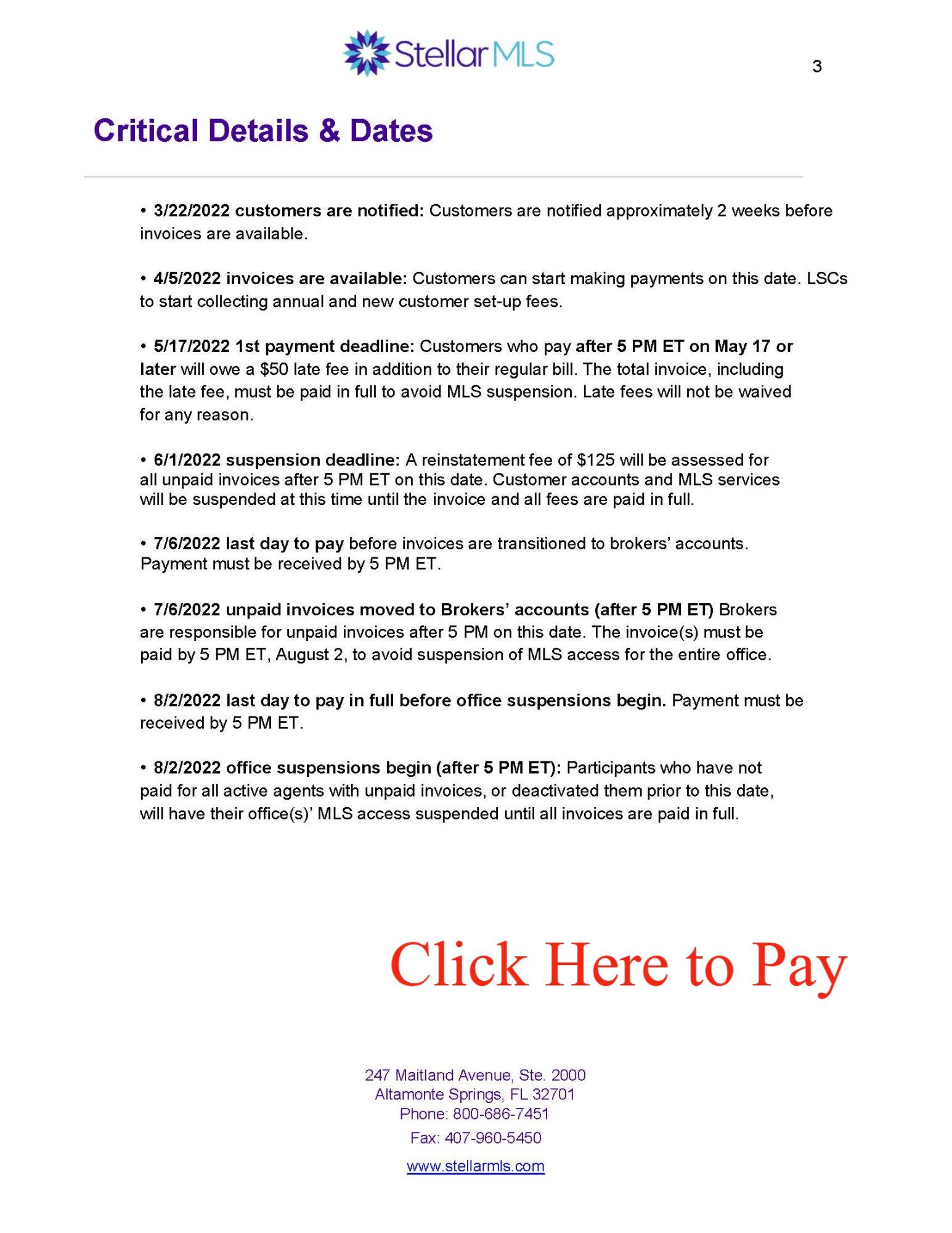 5/17/22 MLS Annual Billing payment is due, before 5pm