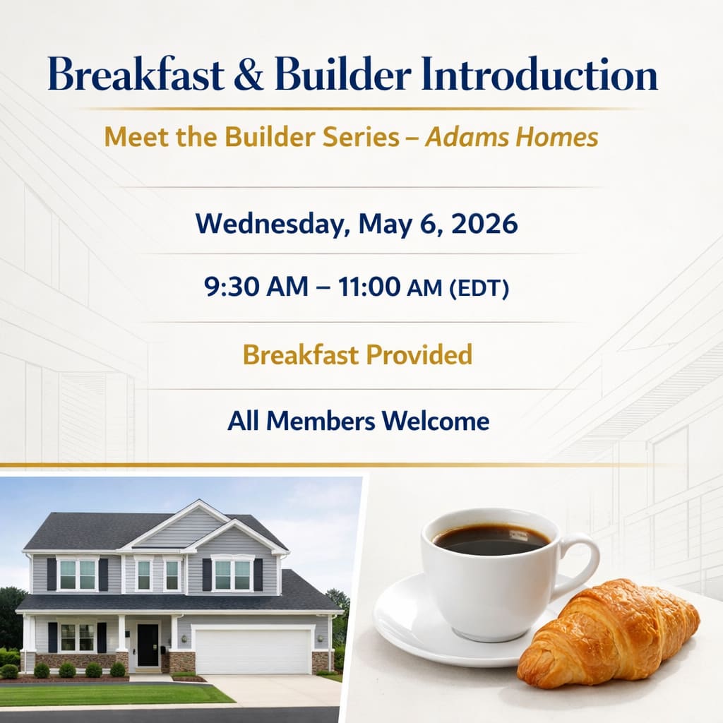 Join us for breakfast and the next installment of our Meet the Builder series, designed to reconnect REALTOR members with local builders and provide timely updates on what they have to offer. This session will feature Richmond American Homes, offering agents a refreshed look at their current communities, home offerings, and how their team supports REALTORS in today's market. While many members may already be familiar with Adam Homes, this meeting provides an opportunity to re-engage, learn what's new, and strengthen working relationships. This is a relaxed, conversational setting intended for connection, updates, and open discussion. Breakfast will be provided. All members are welcome.