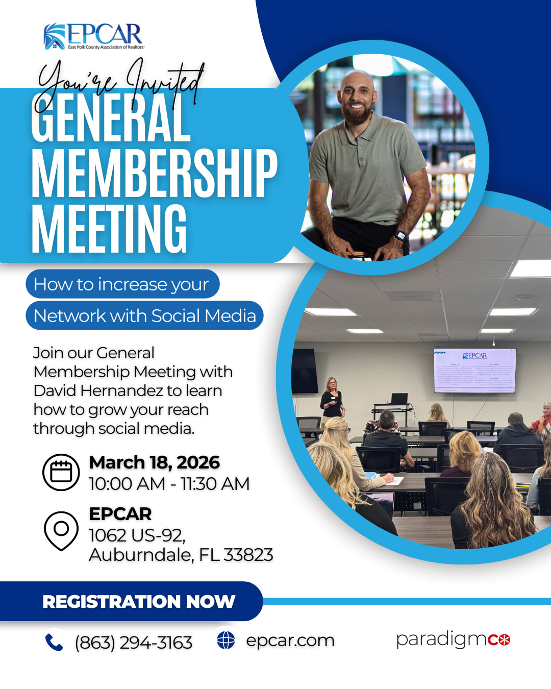 Join us for our monthly General Membership Meeting, open to all REALTOR members and business partners. These meeting provide important association updates, meaningful discussions, and opportunities for members to engage, share ideas, and stay informed on issues impacting our profession and local market. Each meeting is designed to encourage connection, collaboration, and open dialogue as we work together to support and strengthen our association.