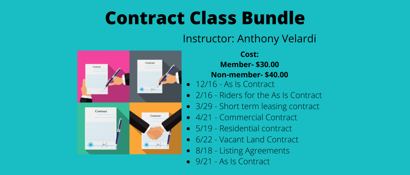 These Non-CE contract classes are for those who need a refresher or are learning! Every month EPCAR will offer a contract class, if you dont see a month listed below they are on the calendar as a CE class. If you choose not to do the bundle please register for the individual classes by going to the calendar and registering by date.