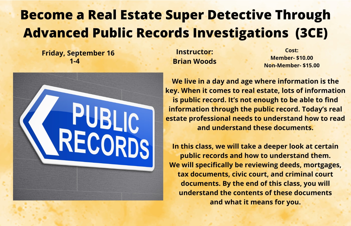 Become a Real Estate Super Detective Through Advanced Public Records Investigations (3CE)
