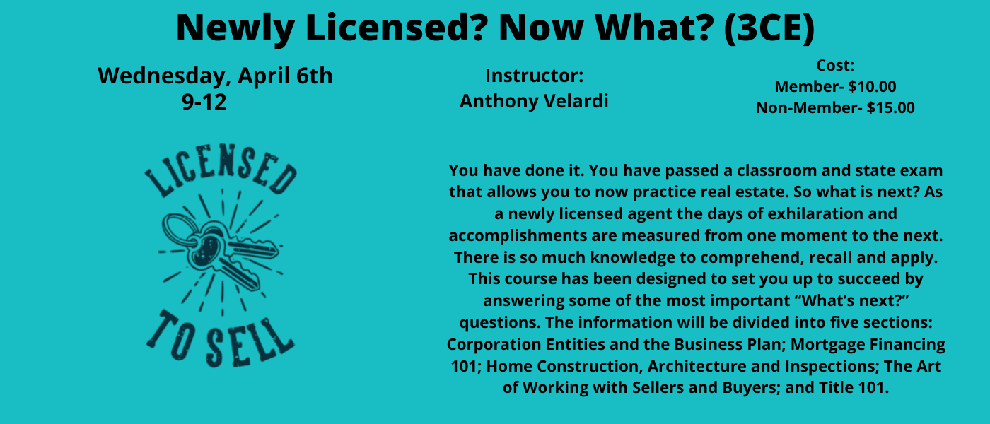 You have done it. You have passed a classroom and state exam that allows you to now practice real estate. So what is next? As a newly licensed agent the days of exhilaration and accomplishments are measured from one moment to the next. There is so much knowledge to comprehend, recall and apply. This course has been designed to set you up to succeed by answering some of the most important “What’s next?” questions. The information will be divided into five sections: Corporation Entities and the Business Plan; Mortgage Financing 101; Home Construction, Architecture and Inspections; The Art of Working with Sellers and Buyers; and Title 101.