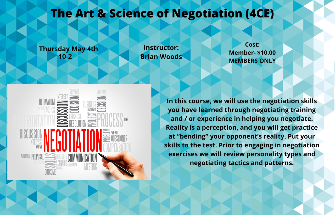 In this course, we will use the negotiation skills you have learned through negotiating training